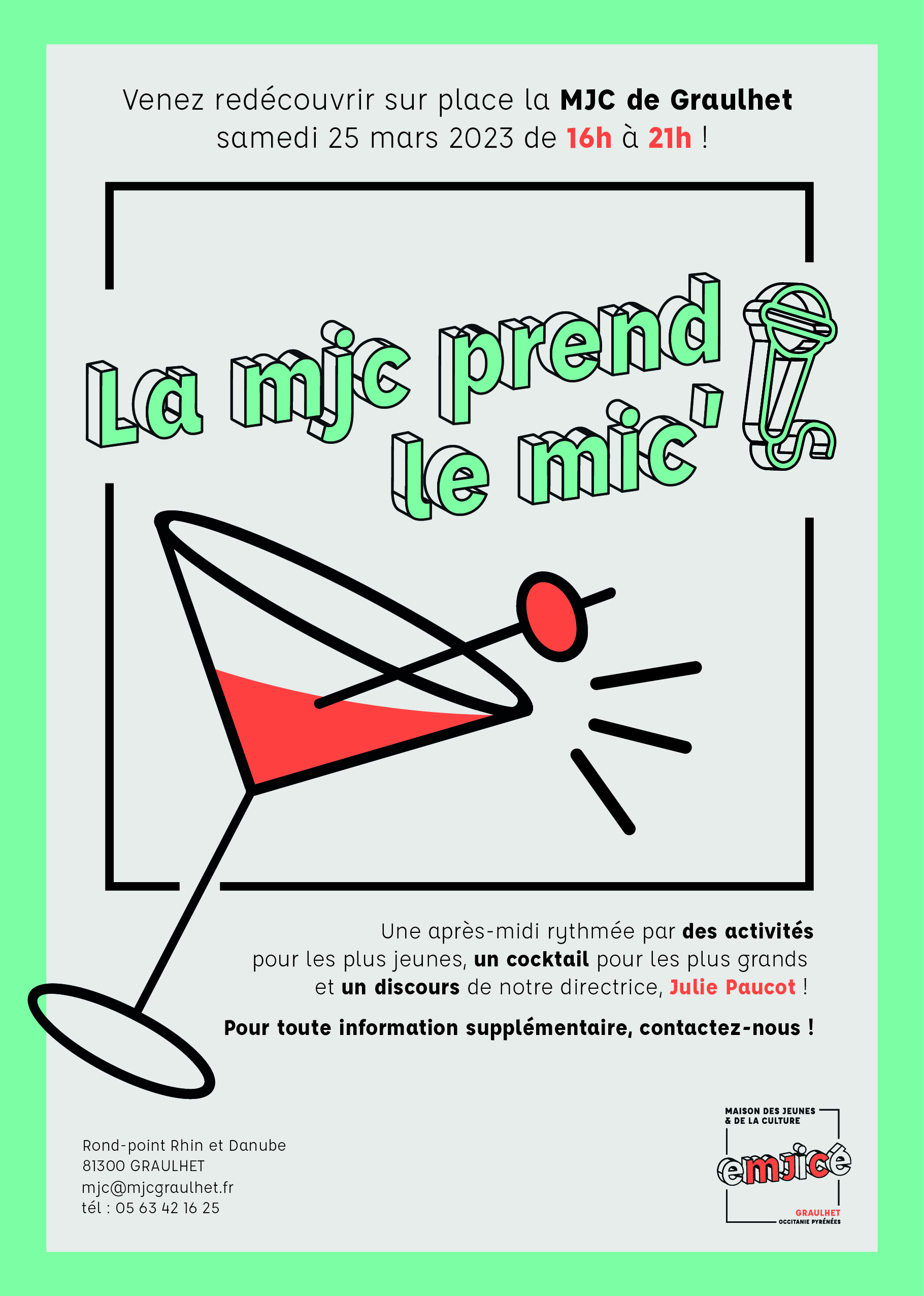 Proposition de re-branding pour la MJC de Graulhet, en collaboration avec des étudiants de l‘ICT de Toulouse, incluant un plan de communication. L’objectif est de dynamiser l’image de la MJC et renforcer son engagement communautaire à travers une identité visuelle actualisée et des initiatives événementielles attractives.
